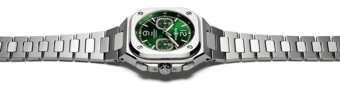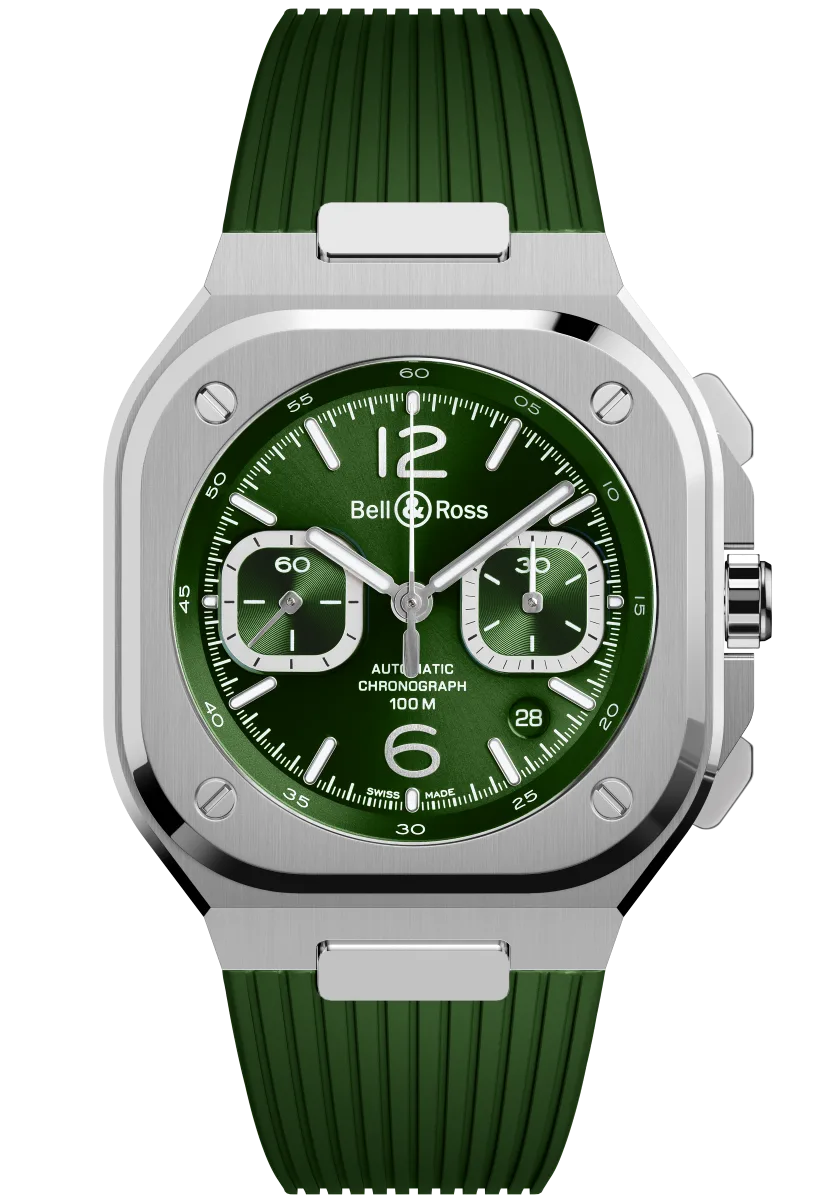 Inspiration for Bell & Ross oscillates between sky and sea, but the Franco-Swiss watch brand that specialises in professional instruments always has its feet on the ground. With its green dial, the new BR 05 Chrono Green Steel celebrates the marriage between contemplating nature and a taste for urban performance. It’s a model of contemporary architecture in a chrono, designed for urban explorations.