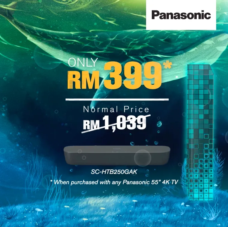 From 12th to 14th December, Panasonic brings you the Whale Sale where you can get a Panasonic Sound Bar HTB250 for only RM399 (normal price RM1039) with a purchase of a Panasonic TV.