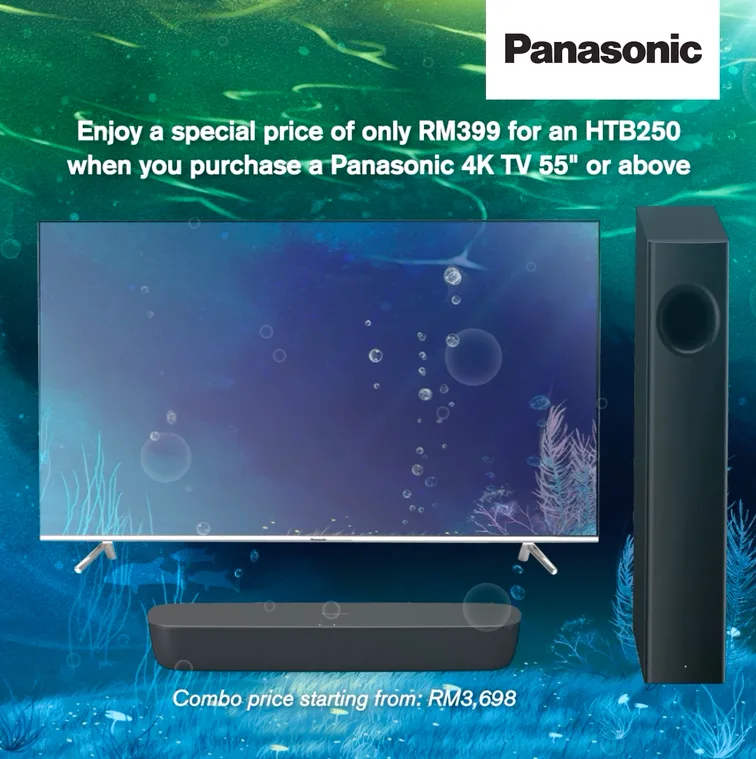 Don’t miss this chance! Enjoy great savings with this special TV and Sound Bar combo deal from as low as RM3,698 when you purchase any Panasonic 4K TV 55” or above. Enjoy great sights and sounds with this awesome price.