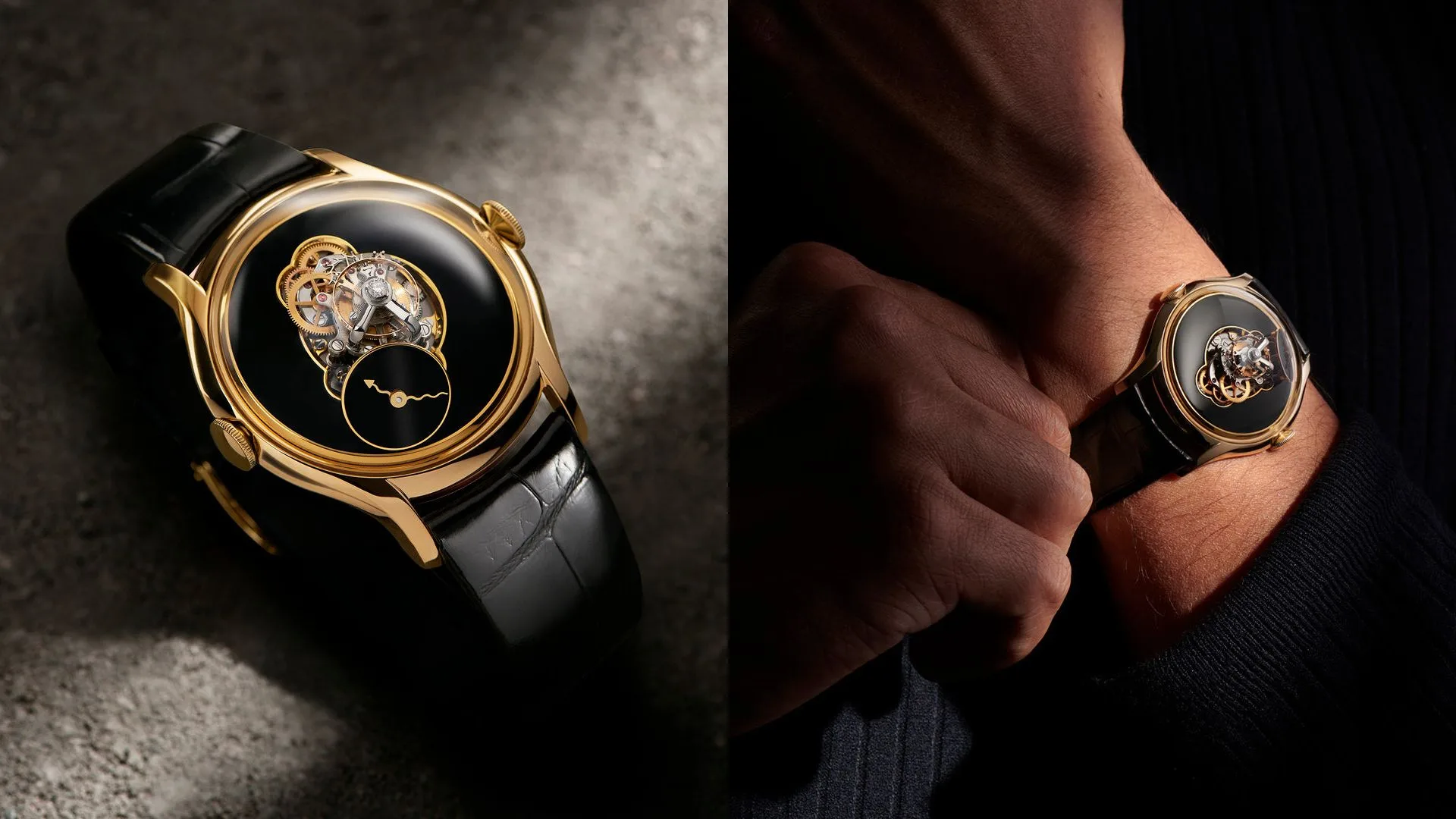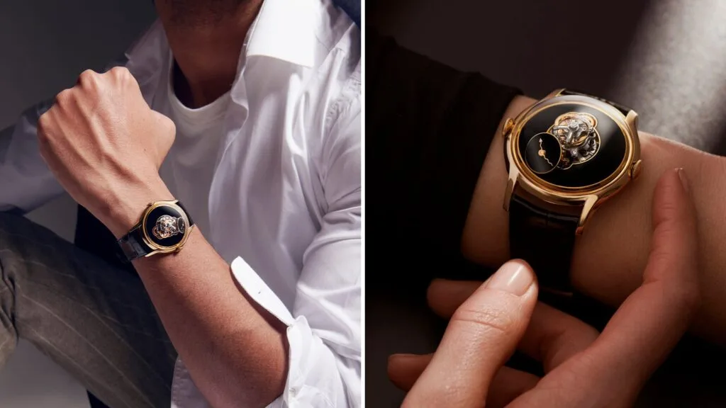 Despite its simpler, less daring design, the LM FlyingT Onyx is still encased in a sleek, 18k yellow gold case. On the back end is the sun-shaped winding rotor that’s made of 18k red gold, titanium, and platinum, creating a sculptural beauty that you cannot help but behold with amazement.