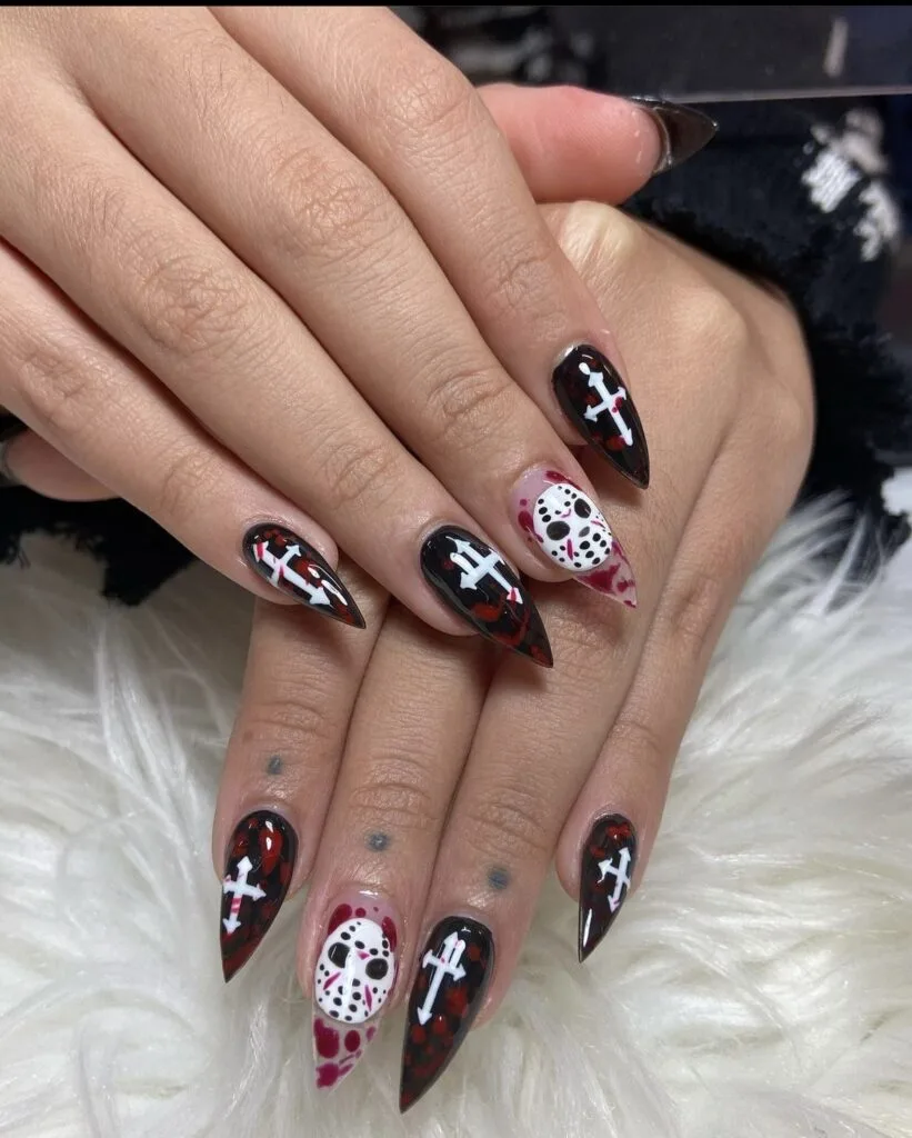 These slasher-themed nails are a suitable tribute for horror movie fans who have a soft spot in their hearts for Jason Voorhees from Friday the 13th.