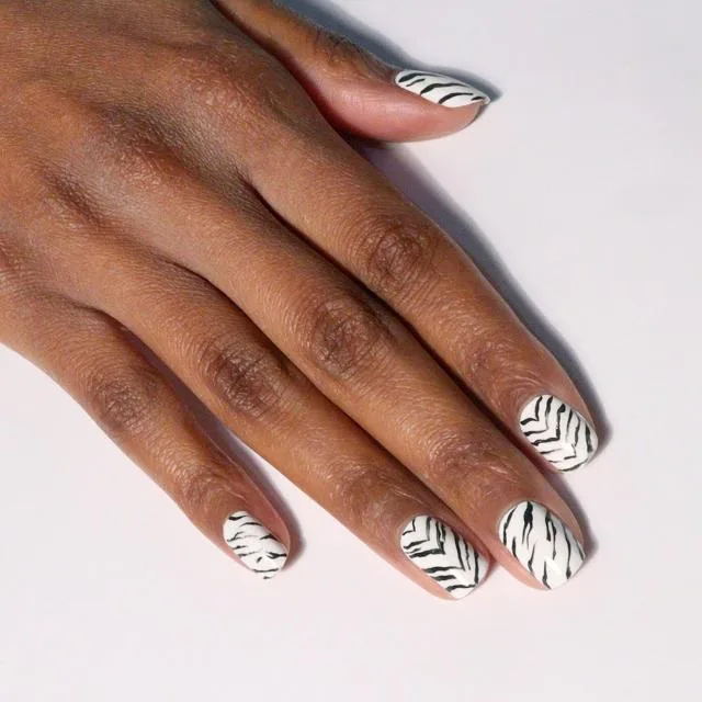 If you’re dressed as a mummy this season, this simple nail design can go with any outfit. The painting has a bold edge because of the black stripes and crisp white base coat.