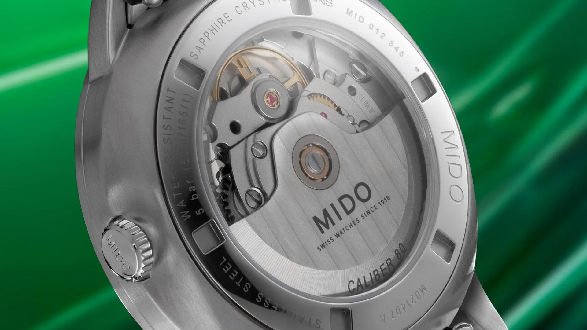 This movement has a power reserve of up to 80 hours, guaranteeing enviable chronometric consistency. The finely-crafted Caliber 80 celebrates the history of watchmaking through its traditional decorations, such as the Côtes de Genève on the oscillating weight, engraved with the MIDO logo.
