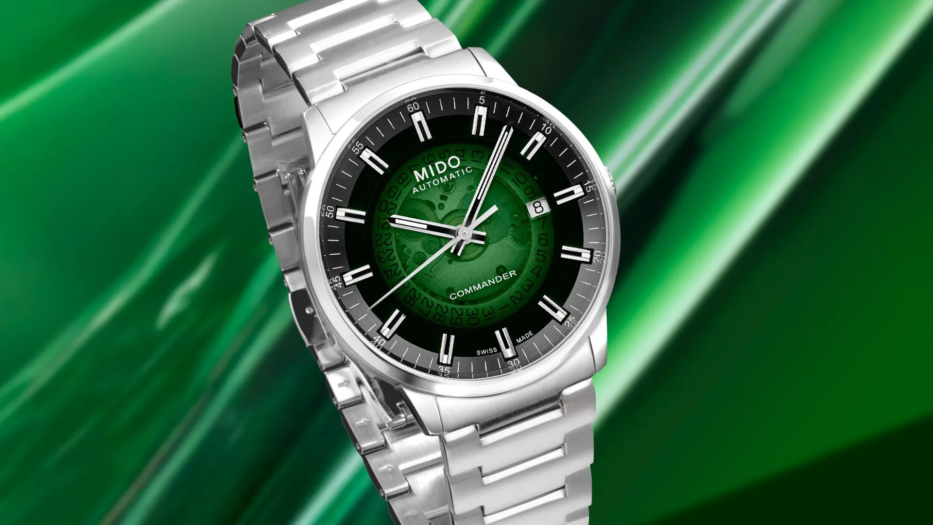 The Commander, produced without interruption since 1959, has become a symbol of MIDO’s excellence. The model continues to surprise, thanks to constant aesthetic and technological innovations. In this new Commander Gradient variation, the green-tinted dial, transparent in the centre and becoming increasingly opaque around the edges, invites you to plunge into the mechanical heart of the watch.