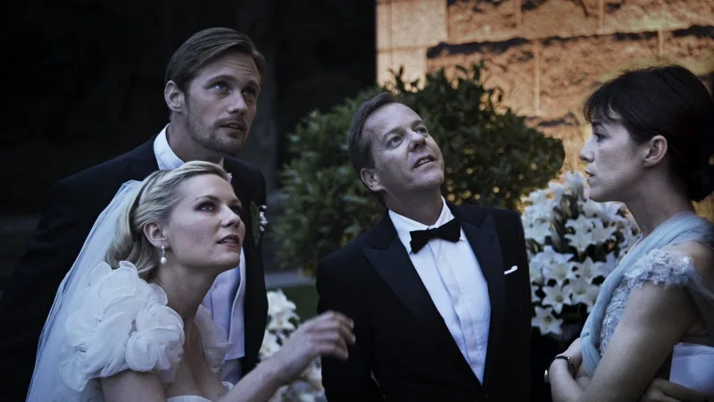 The first seven minutes of painstakingly planned and shot images of sadness will either leave you confused or anticipating a film that will not end well. Then, the first half of the story line kicks off with an introduction to Justine (played by Kristen Dunst) and Michael (Alexander Skarsgård). The “just married” duo are at a wedding party, their wedding party, in the home of Justine’s sister, Claire (played by Charlotte Gainsbourg) and brother-in-law, John (played by Kiefer Sutherland).