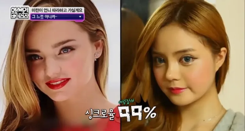 As one of the biggest trends in Korea, it is not surprising that a young woman underwent plastic surgery to look like Australian model Miranda Kerr. This South Korean woman appeared on Martian Virus — a Korean entertainment show as a guest for looking like Miranda Kerr through plastic surgery. The South Korean clone of Miranda insisted that she only had work done on her eyes and nose.