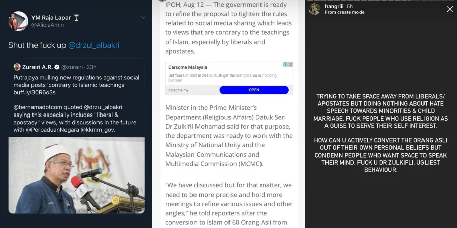 “How can you actively convert the Orang Asli (native people) out of their own personal beliefs but (at the same time) condemning people who want some space to speak their mind? F**k you Dr. Zulkifli. Ugliest behaviour,” continued Alicia.