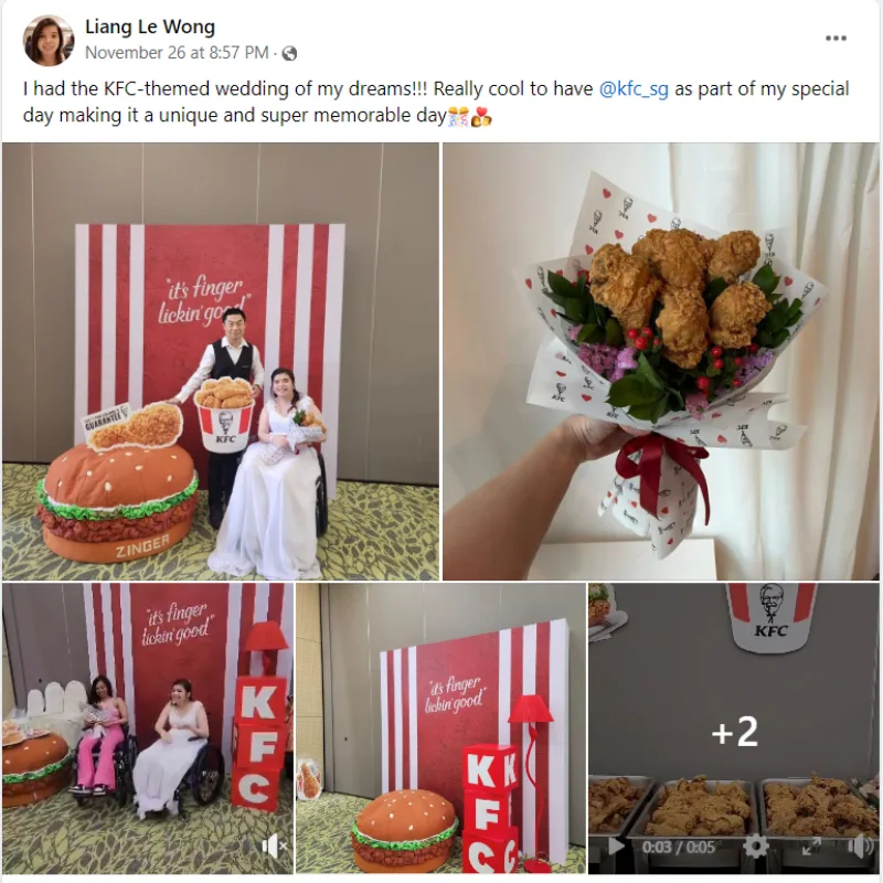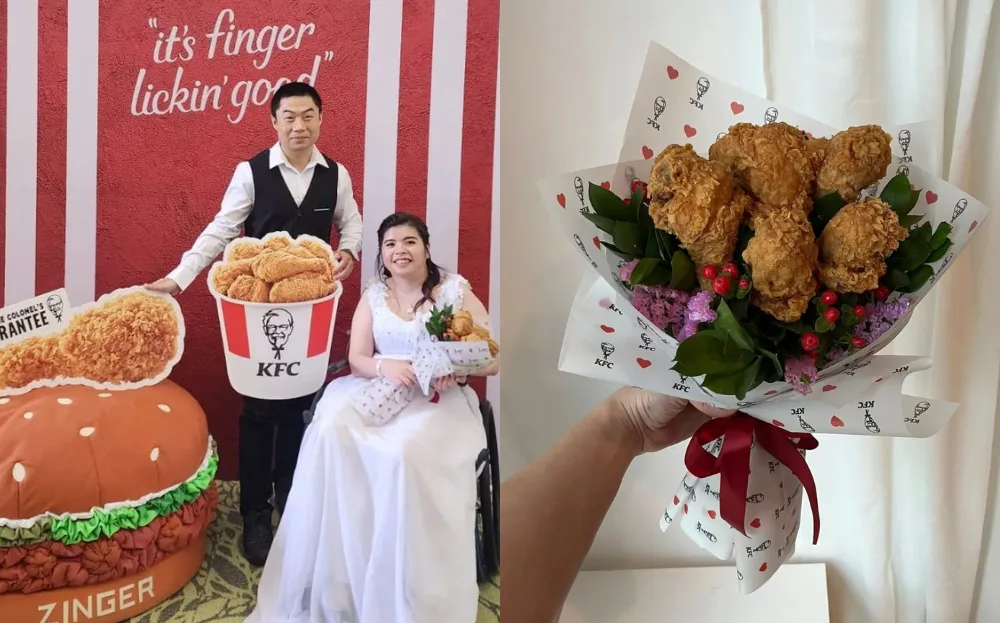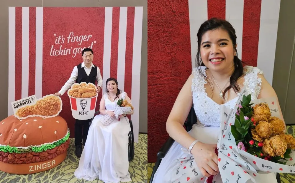Couples getting married would try to include something significant in their wedding ceremony to make it memorable – whether it’s a coffee truck or a fire truck. For this Singaporean couple, they decided to include one of their favourite brands, KFC, on their big day.
