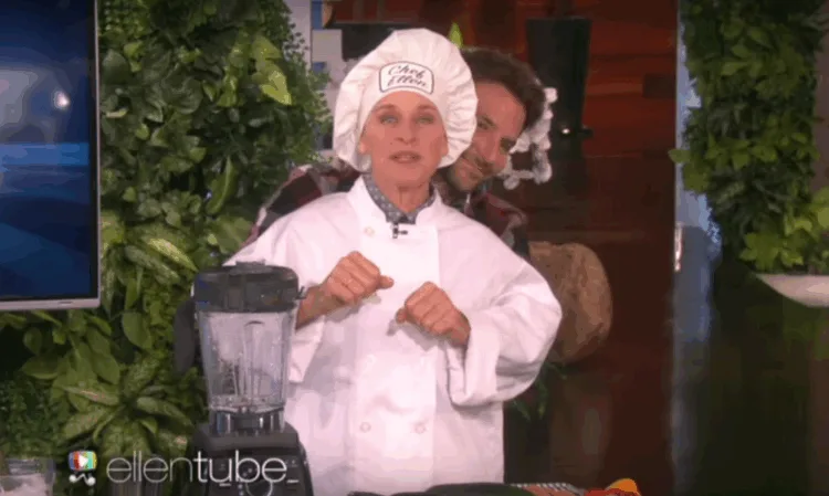 During his interview on the show, Ellen challenged him to a big of cooking fun in order to help raise money for breast cancer. Channeling his inner top chef, Bradley took it on – but with a twist. Ellen kept her hands behind her back while Bradley stood behind her, using his hands as hers. This means that he controlled everything while Ellen had to quickly vocalise through every action.