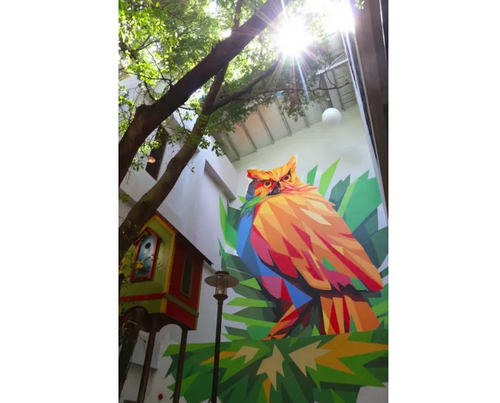 • Art description: The inspiration of the “Small Bird House With Many Houses’’ comes with the meaning of celebration and unity. “The Owl’’ mural brings a close relationship with the “Big Bird House“ as it is home to “The Owl”.
