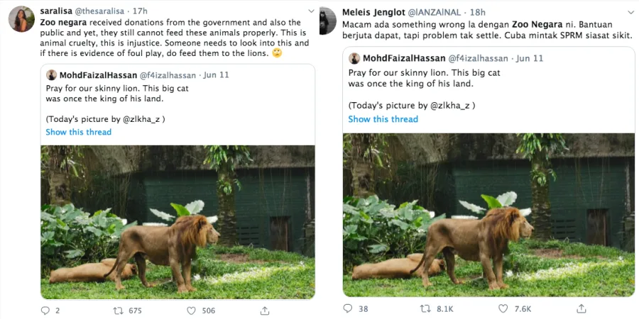 Surprisingly, a few netizens, who claimed themselves as zoo staffs, came to Zoo Negara’s defence. According to one commentator, the donation “barely covers all the fees including the bills, maintenance as well as the food”. Another pointed out that the lion is actually “getting old”, which resulted to its overly skinny body.
