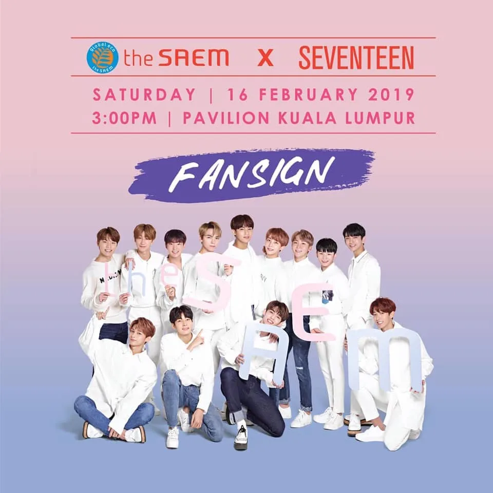 The details to The Saem x SEVENTEEN’s fan-sign event in Kuala Lumpur are as follows: