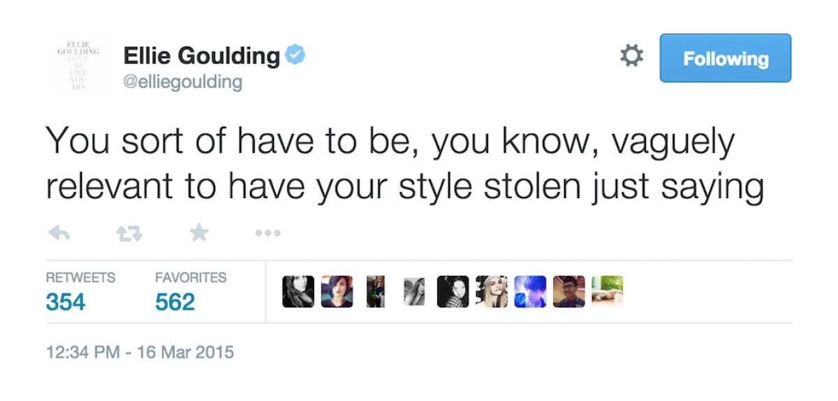 — Ellie Goulding (@elliegoulding) March 16, 2015