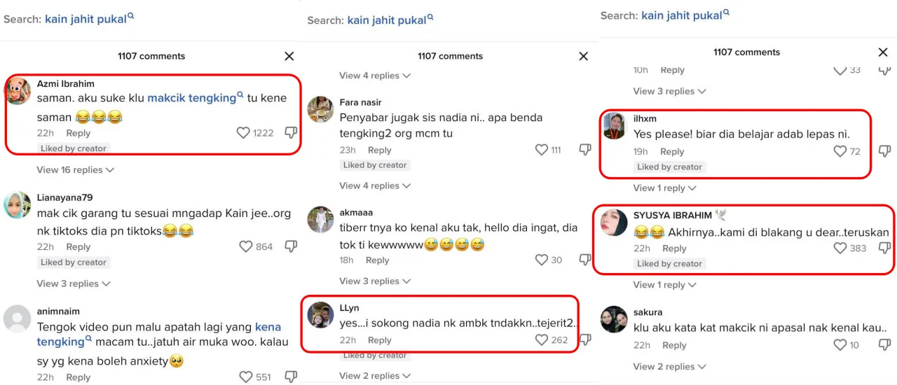 Fans also stood by Nadia and urged the “Suri Hati” actress to take legal action against the businesswoman. “Go for it! I’d like to see ‘Makcik Tengking’ (Madam Mariah) getting slapped with a lawsuit,” one netizen wrote. “We are right behind you, dear. Please proceed.” another fan of her added.