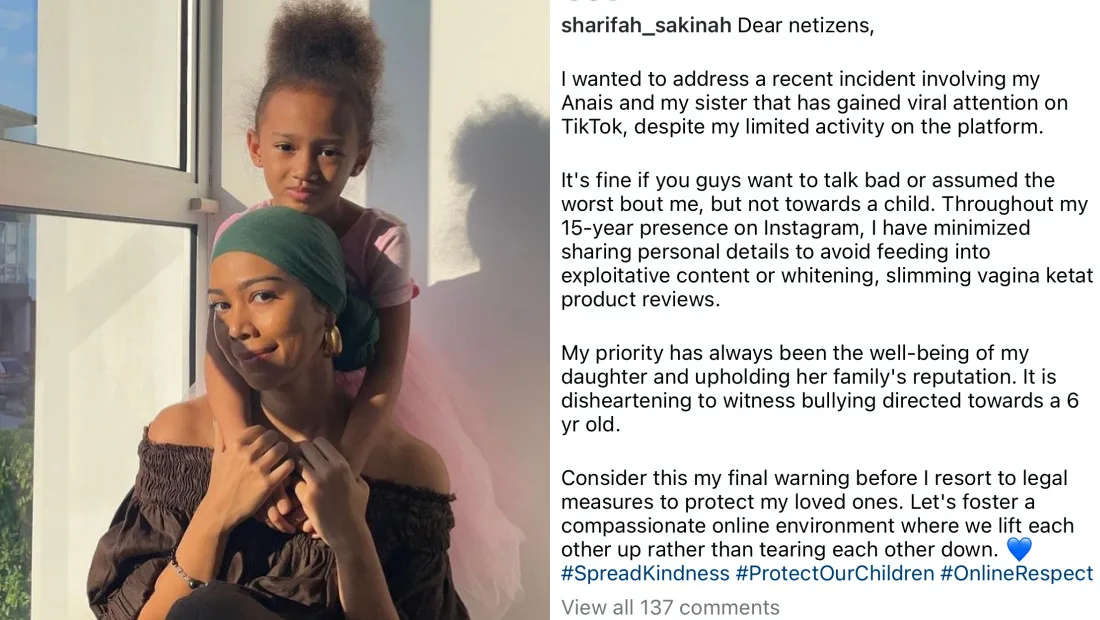 Yesterday (Thursday, 15th June), the mother-of-one posted a statement on her Instagram after her daughter was subjected to hate comments by netizens. Here’s what happened: