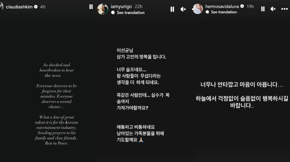 Other Korean stars like actress Claudia Kim, singer Luna of f(x) and Yuri of COOL, all took to Instagram Story to share their thoughts on the late actor’s sudden death and legal case, as well as to offer their condolences and final wishes. As for his drug allegation case, it is scheduled to close with ‘no right to prosecute’ due to his death.