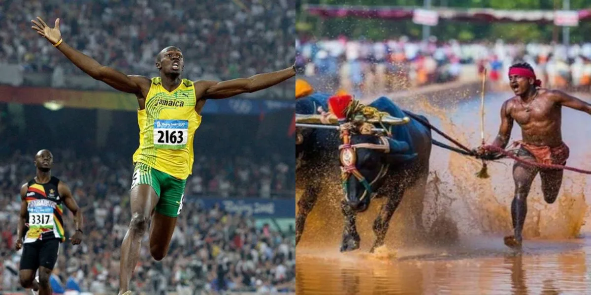 He competed in a buffalo race held in his hometown of Karnataka. Also referred to as the Kambala race, racers need to sprint across the muddy paddy field while holding onto two buffaloes in order to finish the game.