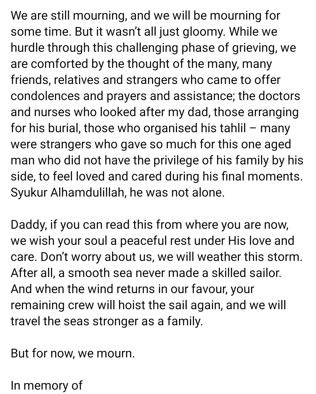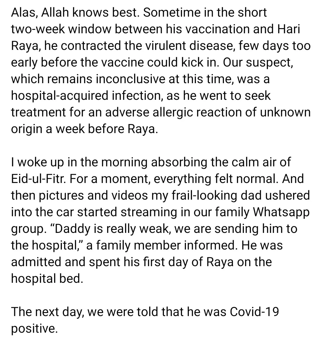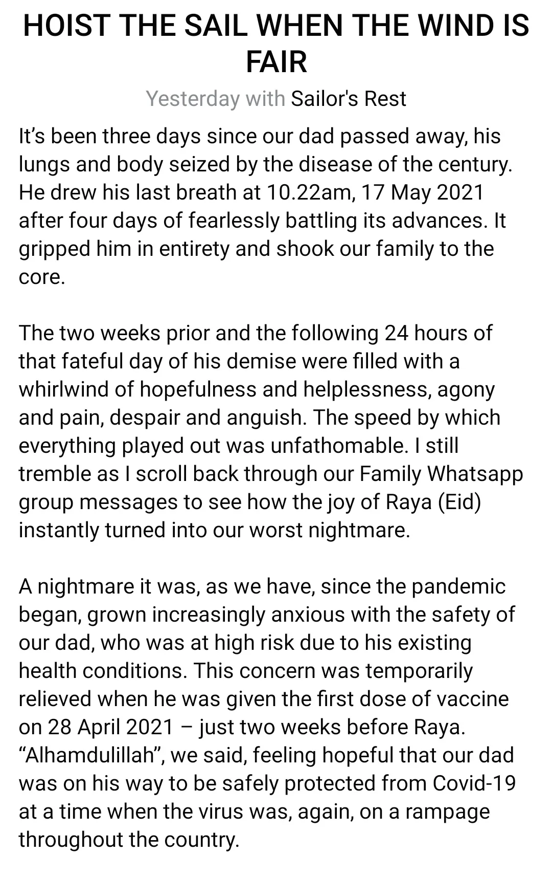 For Twitter user @ZalanZalfrecko, whose real name is Tengku Zahaslan, the death toll on 17th May meant the most to him. On 17th May, there were 45 deaths due to Covid. And one of them was his father.