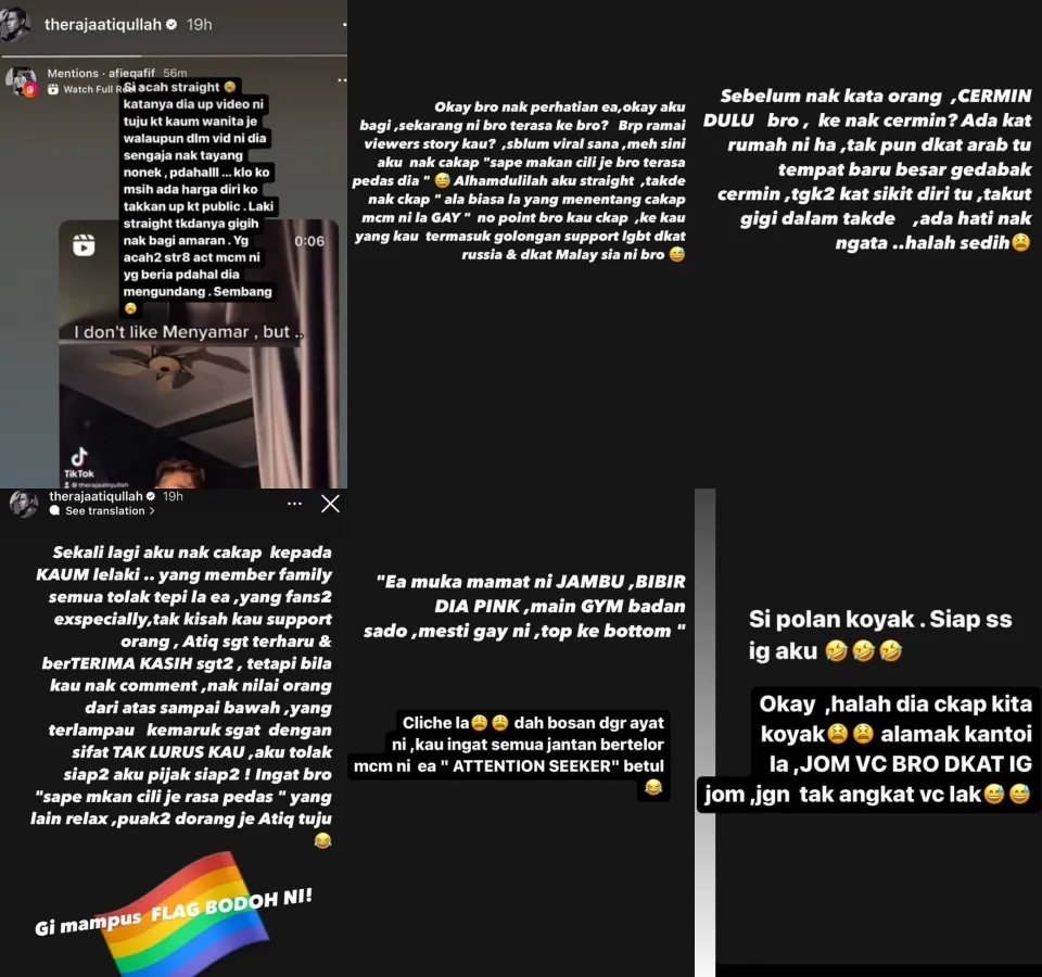 Malaysian actor Raja Atiq previously mentioned that he does not mind getting naughty comments from men on his Instagram as he still appreciates their support. However, one individual, who tagged him in an IG story, may have crossed the line when he accused the 22-year-old of being gay after posting a questionable video of himself on TikTok.