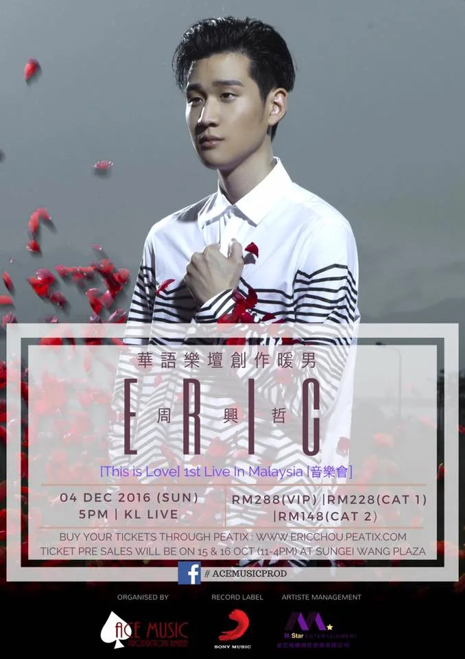 Details for Eric Chou’s live show are as follows: