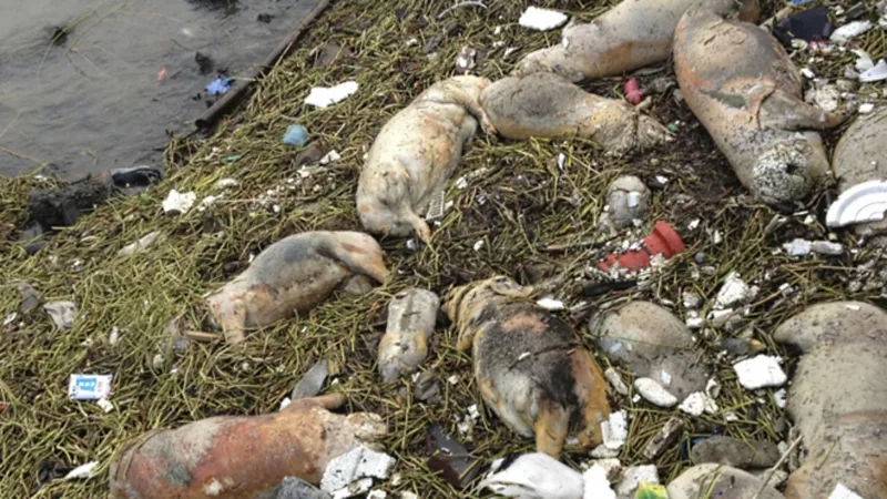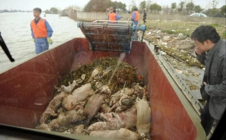 Shanghai authorities are investigating the matter, with high suspicions that the pigs were dumped by farms upriver.