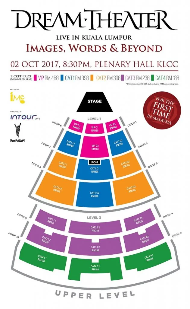 ** All numbered seating and ticket prices are inclusive of 6% GST, but exclusive of RM4 processing fee.