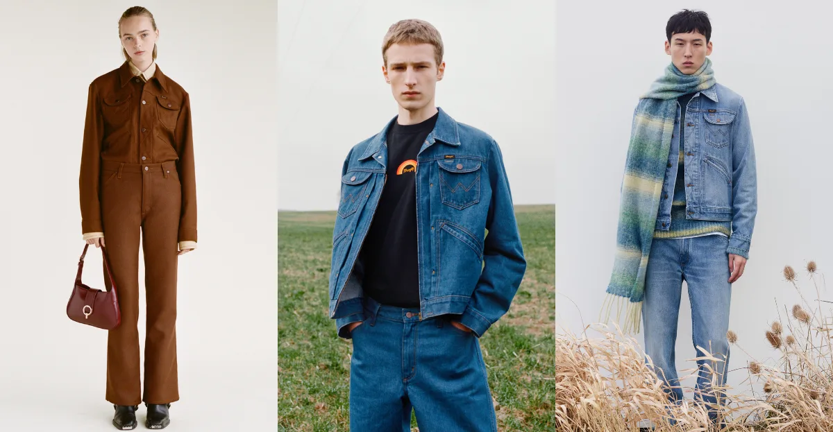 SANDRO’s Fall-Winter 2023 Collection marks a creative collaboration with the iconic brand WRANGLER, paying homage to the aesthetic codes of their shared youth and celebrating WRANGLER’s distinctive heritage. Inspired by 70’s cowboy fashion, the collection includes ten pieces that reinterpret WRANGLER’s signature style with a modern twist. Three jacket-trouser sets capture the essence of WRANGLER, featuring elements like flat rivets, flap seams, W-shaped pocket topstitching, and the iconic WRANGLER branded leather labels. The first set, crafted in brown wool polyester, exudes a rustic charm, while the other two sets are fashioned from faded denim in varying shades of indigo. To complete the collection, there are two sweatshirts and two cotton T-shirts available in black and beige, adorned with an embroidered WRANGLER rainbow logo.