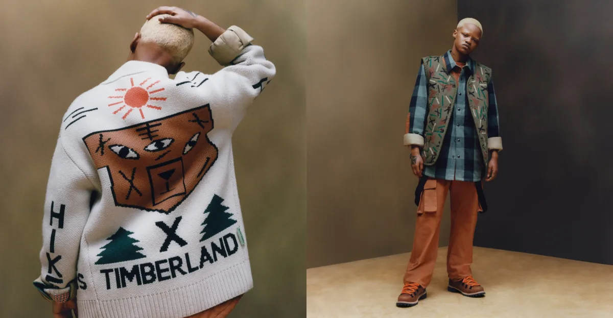 Abney’s artistic sensibility comes to life in the Future73 designs, merging her appreciation for the great outdoors with her distinctive artistic flair. Her process began with extensive research, including gathering photo references and archival imagery, followed by hand-drawn artworks that were digitised for use in knits and prints. The Timberland® x Nina Chanel Abney Future73 6-Inch Boot, a standout piece, features premium leather with a striking rippled outsole. Its defining feature is the reversible, interchangeable quarter panels, embossed backstay snaps, and extra laces, allowing wearers to personalise their style. Abney’s original artwork blends seamlessly with the distinctive “claypot” coloured leather, adding a layer of intrigue to the boot.