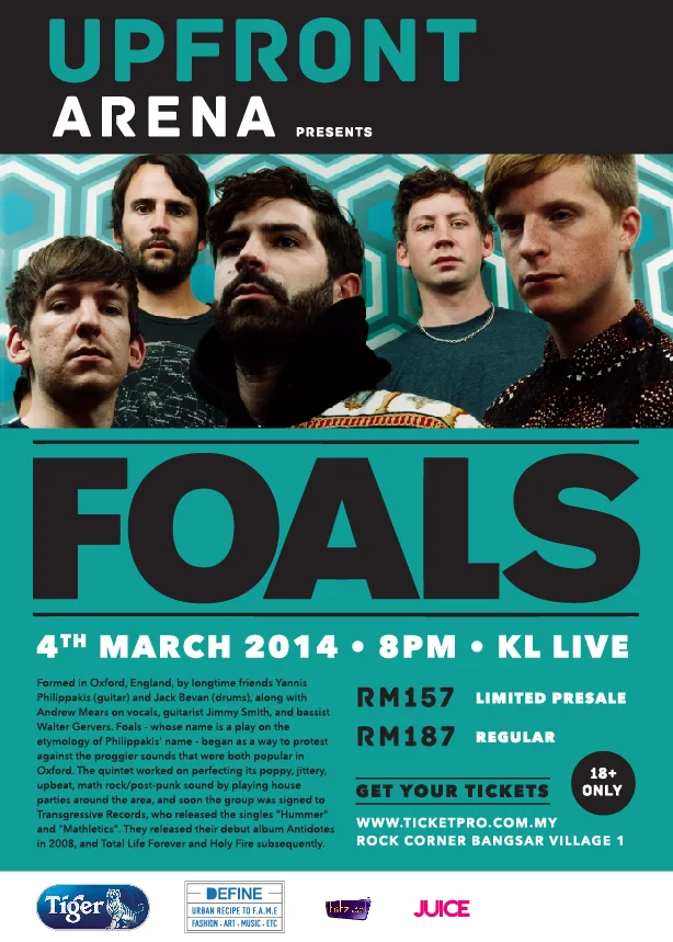 Kicking off this exciting series is none other than UK Band, Foals! NME award-winning india act known for their hit songs Spanish Sahara and Inhaler, the Oxford quintet is set to rock KL Live on March 4th, 2014.