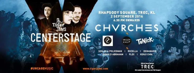 Taking place on 2nd Sept at Rhapsody Square, TREC, Tiger Jams Centerstage will feature the top 3 contestants – Rozella, Son of a Policeman, Donamarie, acclaimed Asian acts The Sam Willows (Singapore), ToNick (Hong Kong) and Darren Ashley (Malaysia), and Chvrches. The venue will also showcase art pieces by Tiger Jams’ local visual artist, Donald Abraham, Kenji Chai and Flex, who were also instrumental in the creative production of each of the 3 finalists’ music video made for their Tiger Jams’ original track.