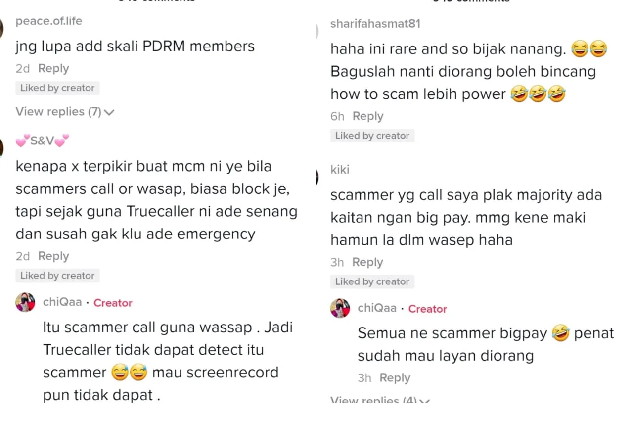 Many fall victim to their tricks but there are also a few others who have managed to outwit and pull a fast one on these deceitful individuals. Recently, a video uploaded on TikTok by user @_frhna managed to gain attention from the public for her amusing ways in dealing with multiple swindlers’ numbers on her phone.