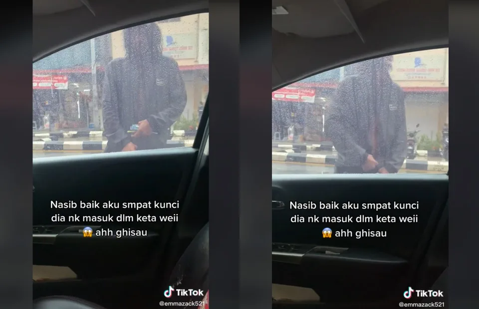“My hubs, along with my child, went out to get their haircut at a shop across the street. I didn’t tag along, so I waited in the car. Furthermore, it was raining at that time (at about 6pm). Just five minutes after they left, suddenly a guy came approaching our car. He appeared looking insane. His clothes looked dirty,” Emma remembered.
