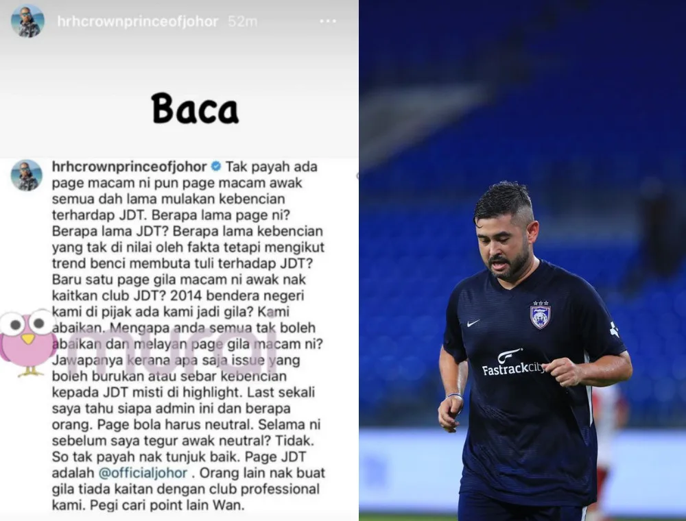 In his long post on IG Story (as per the web’s report), the Johor Darul Ta’zim football club (JDT) also pointed out that the public has been throwing unnecessary hate towards his sports team. He stated, “There’s no need to come up with a page like this, even people like you have long started to hate JDT. How long has this page been created? And how long has JDT been formed?”