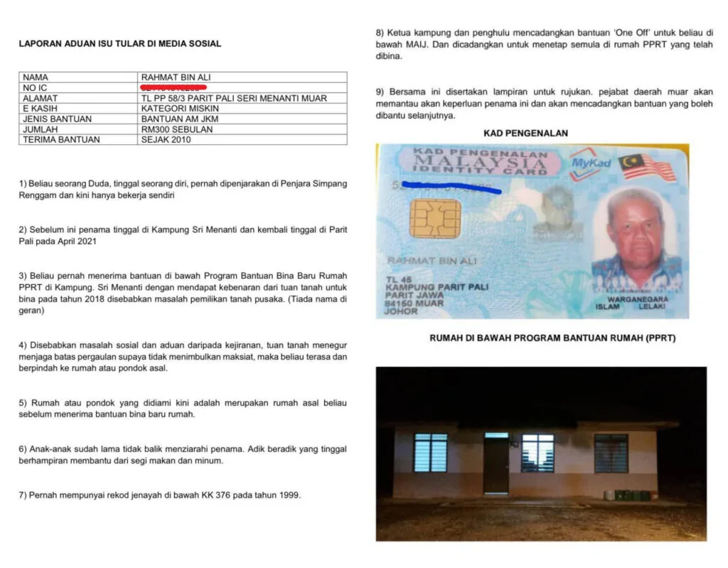 His Highness added that Pakcik Rahmat had previously resided in Kampung Sri Menanti, before returning to live in Parit Pali back in April. “He’s a widower, he lives alone. He was once imprisoned in Simpang Renggang Prison and is now self-employed,” the 37-year-old prince revealed in a statement.