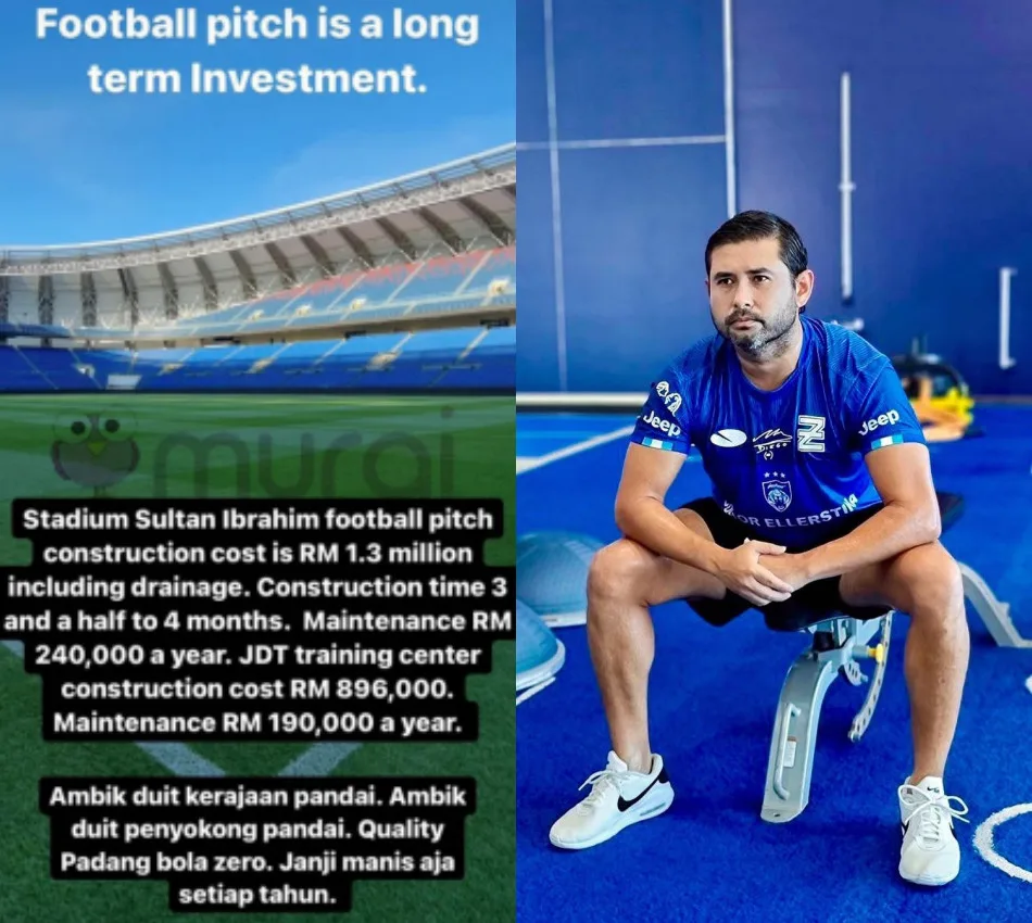 In his next post, the former Football Association Malaysia (FAM) chairman pointed out that football pitch is a long-term investment and should be emphasised by the parties involved. “The construction cost for the Sultan Ibrahim Stadium football pitch is RM1.3 million, including drainage. It took about three and a half to four months. The maintenance cost is RM340K a year,” TMJ shared, as reported by Murai.