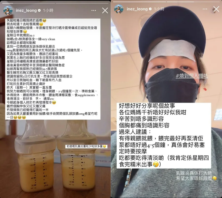 Inez, who is married to Hong Kong actor Tony Hung (洪永城), gave birth to her second daughter at the end of March. She subsequently went into a confinement period of 30 days to recover and only recently completed her confinement. However, towards the end of the 30 days, Inez became seriously ill with a high fever. The 36-year-old shared her experience through several postings on Instagram Stories.