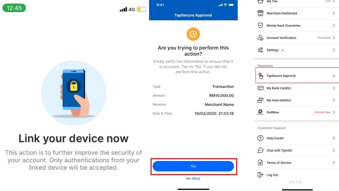 Earlier this year, Touch ‘n Go eWallet implemented the TapSecure feature into its security policies. Rather than using the usual SMS OTP, users have been using the new one-tap approval feature to authenticate transactions more securely from their primary device.
