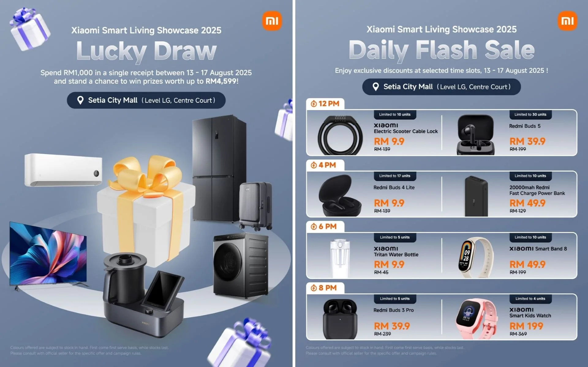 Join the Xiaomi Smart Living Showcase 2025 from 13th to 17th August 2025 at Setia City Mall’s Centre Court, LG Floor. With significant savings, exclusive bundles, and hands-on demonstrations of the latest smart home technology, it’s the perfect opportunity to discover how automated living can transform your daily routine.
