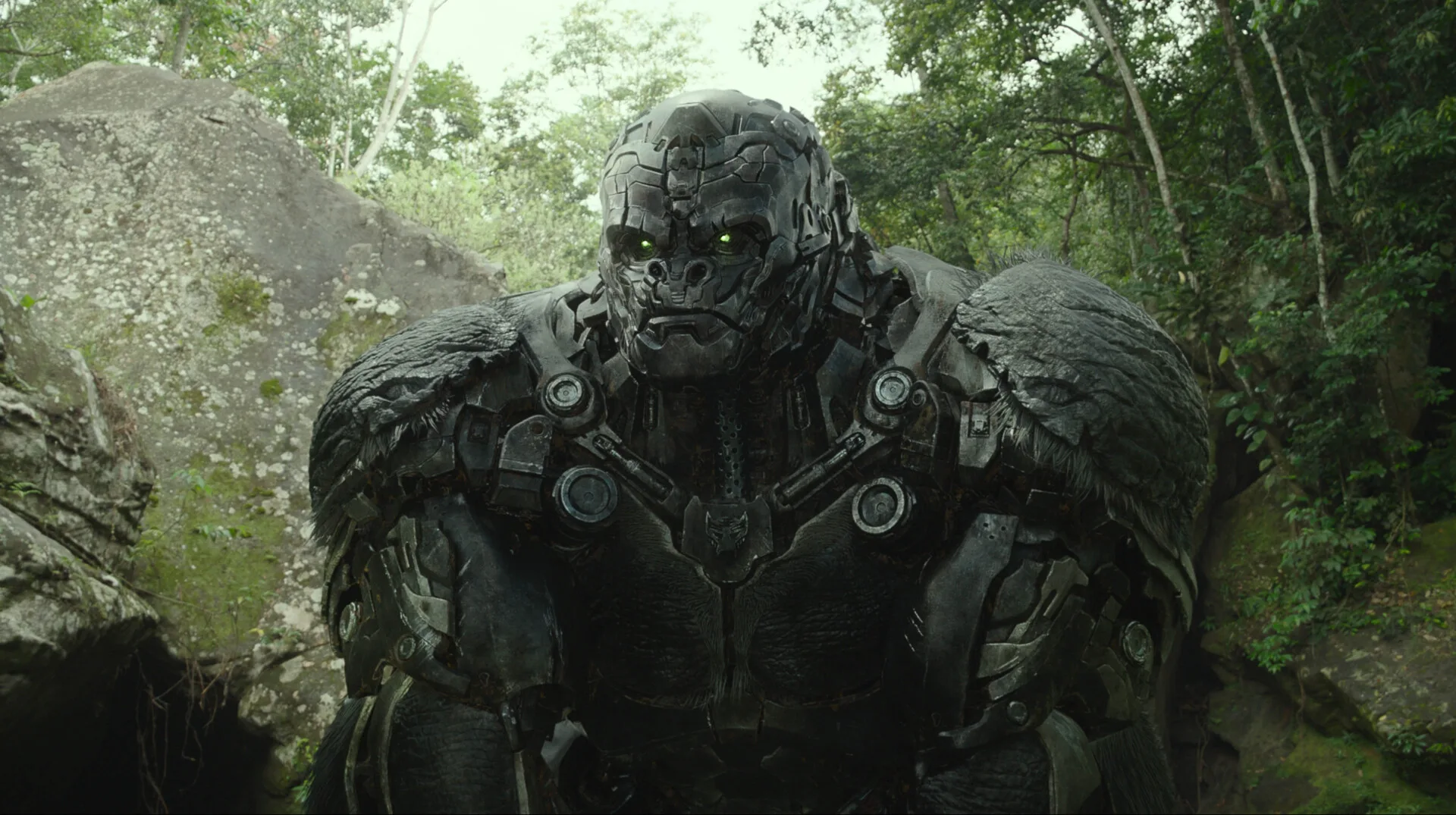 On the ground, Optimus Primal (Ron Perlman), Airazor (Michelle Yeoh), Cheetor, and Rhinox rendezvous with Apelinq, in hopes of reclaiming whatever they have left when the reformatted demon spawn of Unicron lands in the forest ahead of them. Scourge (Peter Dinklage), Terrorcon, and servant of the chaos-bringer, is on a mission to ensure that his master is satiated and quenched.