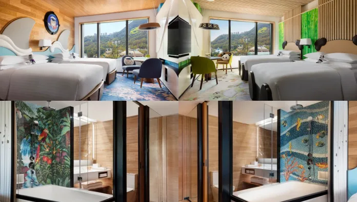 Hong Kong Ocean Park Marriott Hotel houses 471 smoke-free, luxurious rooms and suites that perfectly captures the Modern Marriott ethos with streamlined interiors, environmental themes and ocean-inspired decor. 3 types of family themed rooms (Whiskers Submarine, Redd Forest and Bao Bao Paradise) are available at the Pier Wing and Marina Wing.