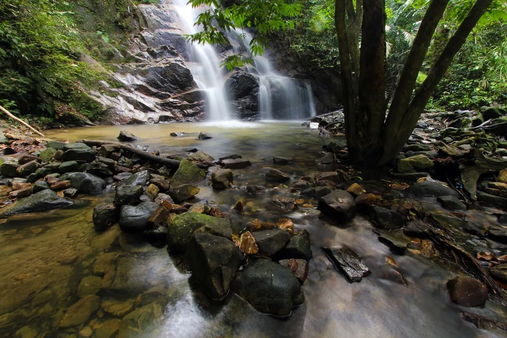 Formerly known as Kemansah Fall, Sungai Ampang Falls is located near the National Zoo at Ulu Klang. After passing Kampung Kemansah, you’ll reach the Institut Budaya Baru Melayu. From there, you’ll need to trek for approximately 45 minutes till you hear the sounds of falling water. That’s your cue that you’ve arrived at the first small fall, Lata Shem, or Lower Ampang Fall.