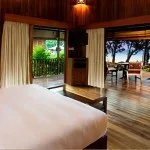 All 48 private timbered villas reflect the simplicity of the Borneo architectural style, showing the distinctive lines and aesthetics of the traditional Bornean architecture.  They are just steps away from the beach as the resort is framed by a pristine white beach on one side and a lush virgin jungle on the other.