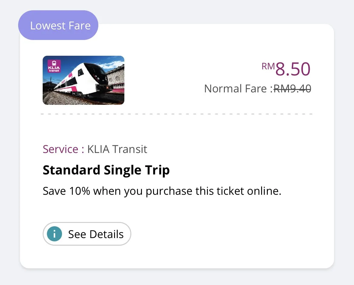 It was recently brought to our attention that there was an option for people to consider if they wish to reach KLIA without spending too much. According to KLIAEkpres, a standard single trip to KLIA from the Putrajaya Sentral station with KLIA Transit will cost you only RM8.50 if you purchase the ticket online!
