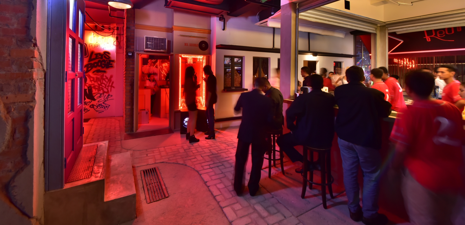 The tenancy mix at Electric Boulevard has a variety of live music venues, eateries, DJ-centric bars and clubs, with many offering a duo concept of a bar-eatery such as darts bar Friendscino, Meja restaurant and Hacha Mecha, which also features a weekend pop-up supper stall serving hot udon and ramen from midnight.