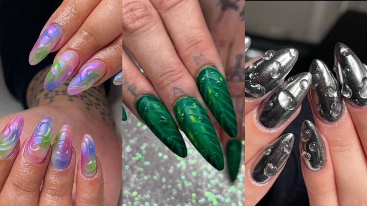 Dew drop nails are part of the ongoing 3D manicure craze, which was influenced by Korean and Japanese manicure techniques. You may wear them however you like; browse social media to see the eye-catching styles – mermaid vibes, minimalist chic interpretations, fairycore designs, and even Y2K-inspired ideas. You may switch the style from charming to wacky in a matter of seconds by adjusting the base colour and how the tiny droplets are applied.