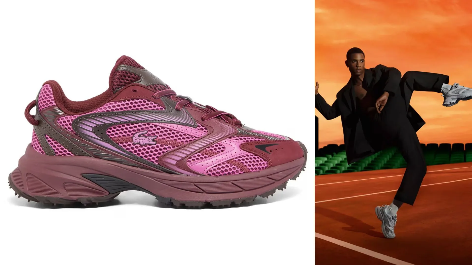Tonal PU and synthetic overlays, nubuck toe caps and Lacoste’s iconic crocodile motif are used as TPU accents on both sides of the sneaker, which further enhances its sporty and urban appeal.