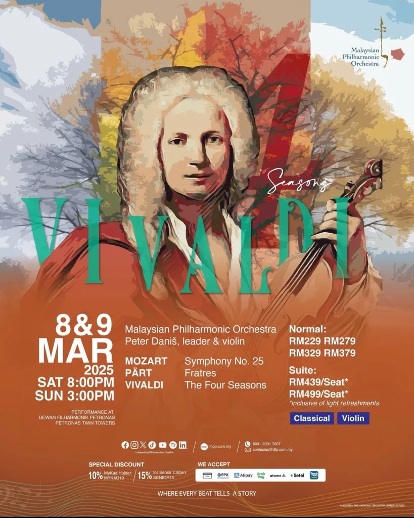 Let the Malaysian Philharmonic Orchestra take you on a seasonal musical exploration with Vivald’s Four Seasons! Immerse yourself in the story of the four magnificent seasons, told through music’s magical notes and beats. Click here to get your tickets!