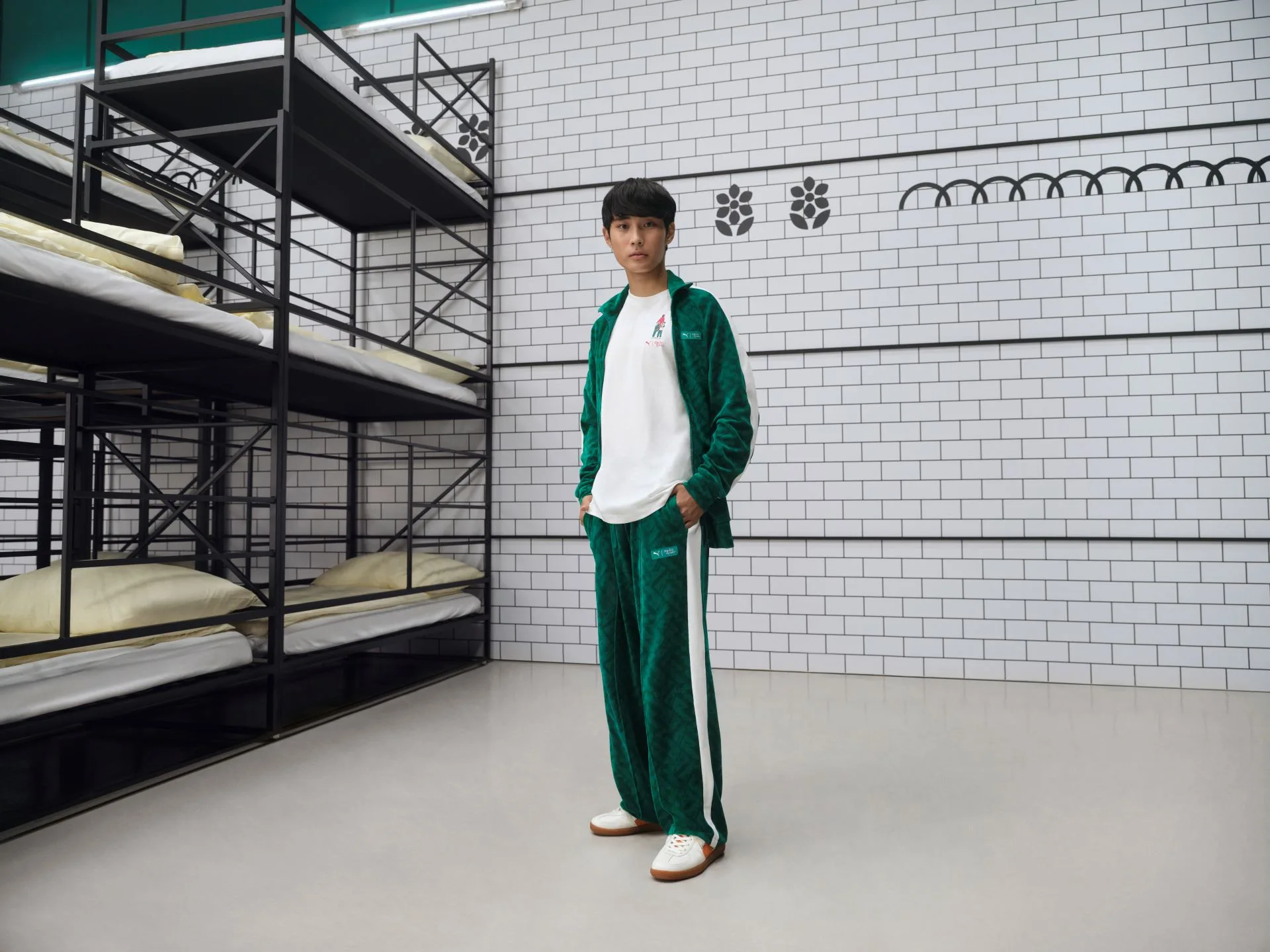 The PUMA x Netflix Squid Game collaboration is back with a thrilling twist for season two! Featuring the iconic PUMA Palermo sneaker and a bold new graphic T-shirt, this drop brings the sinister “Mingle Game” to life. The Palermo stands out with its customisable swappable tongue, representing the choice of doors from the game, while a hidden Squid Game easter egg adds a touch of intrigue.
