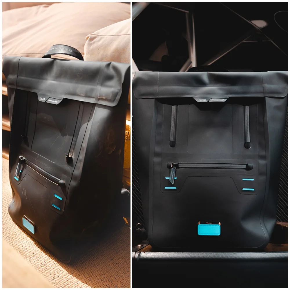 In keeping with the Extreme E ethos, the packaging for the TUMI | McLaren Extreme capsule keeps low impact and sustainability in mind. When purchased on TUMI.com, each style comes in a small thin box with the product in a reusable compression storage bag.