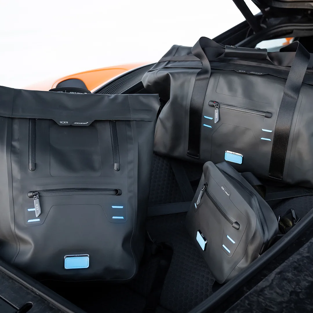 The TUMI | McLaren Extreme capsule combines cutting-edge technology, innovation and design excellence, highlighting the performance heritage of both partners. Each piece incorporates fully welded construction with state-of-the-art materials and techniques that truly push the boundaries of what this collection has done before. The pieces are unlined, lightweight and water-resistant, with TUMI+ functionality and pops of color that tie back to McLaren’s color palette.